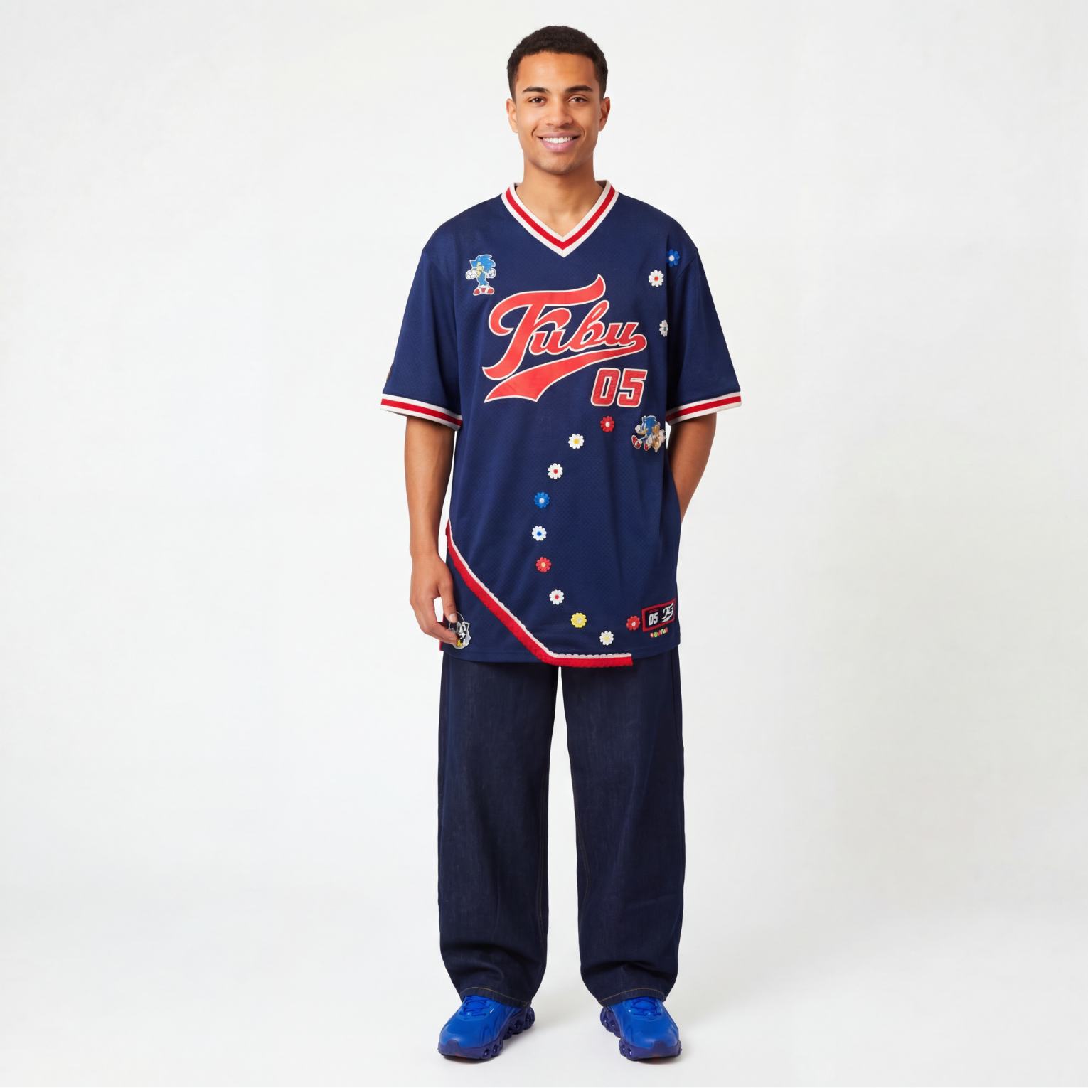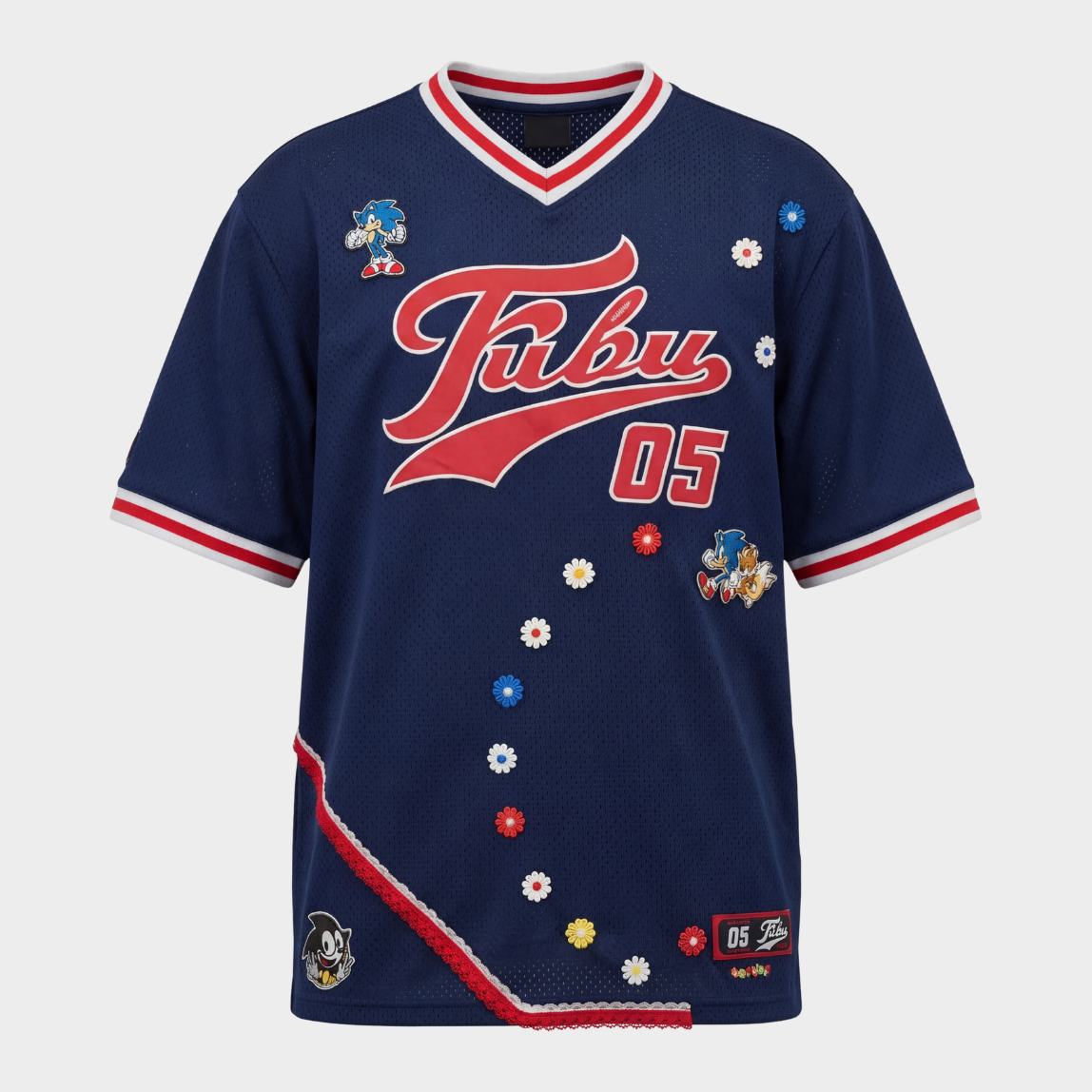 T-shirt basket-ball Fubu & Sonic en matière respirante. Taille L avec une coupe oversize et un col V.