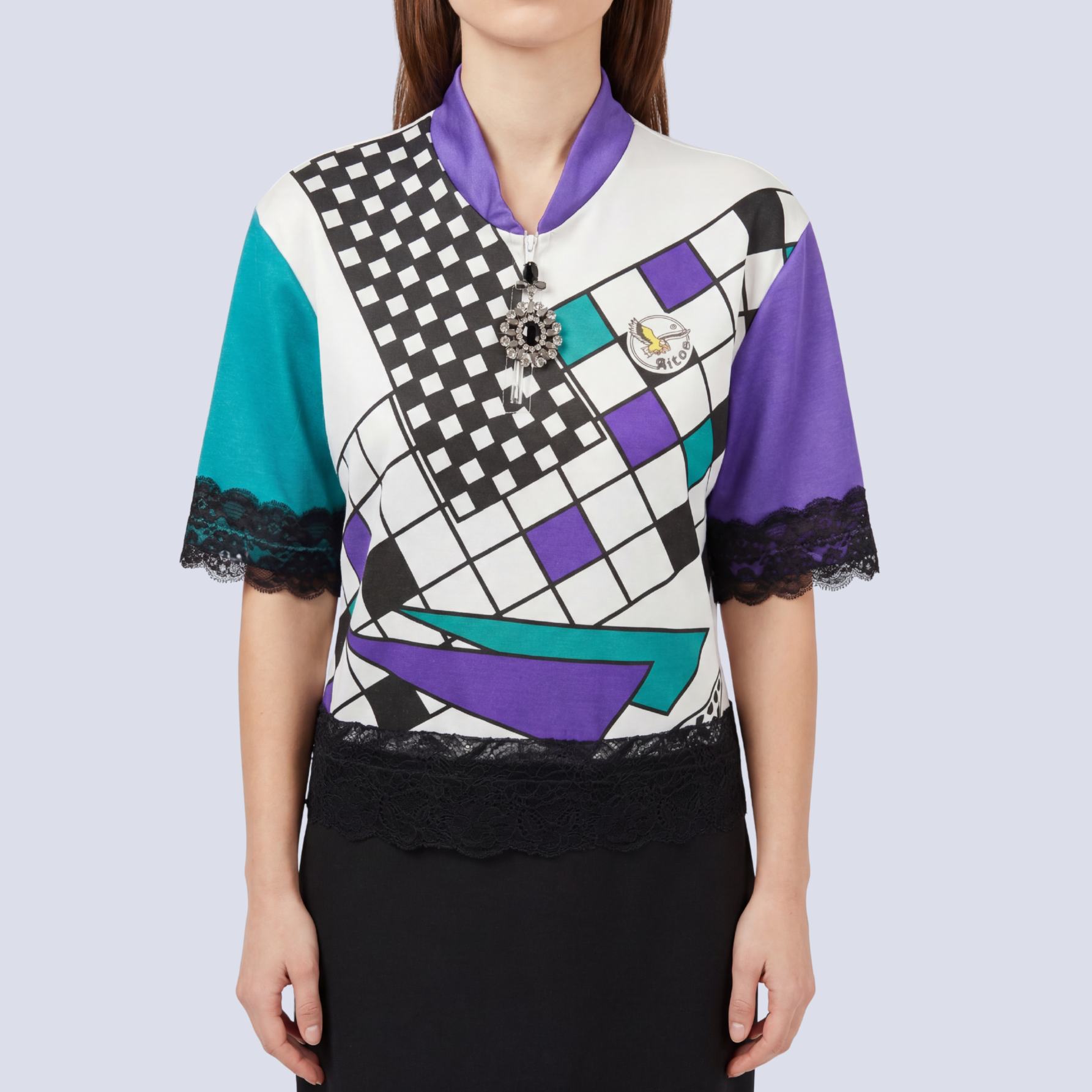 Couleurs : blanc, turquoise et noir.